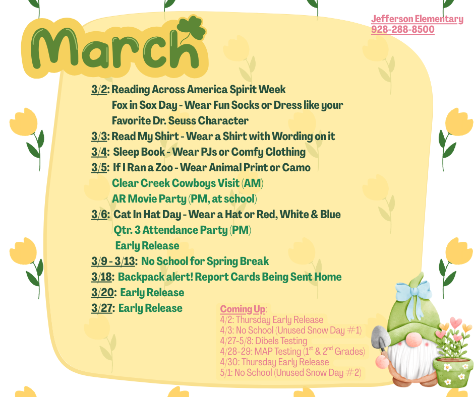 Jefferson Elementary Events Calendar