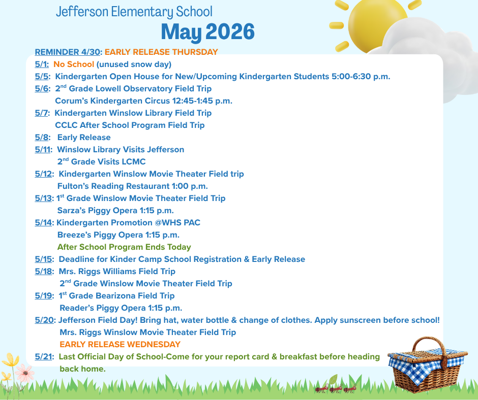 Jefferson Elementary Events Calendar